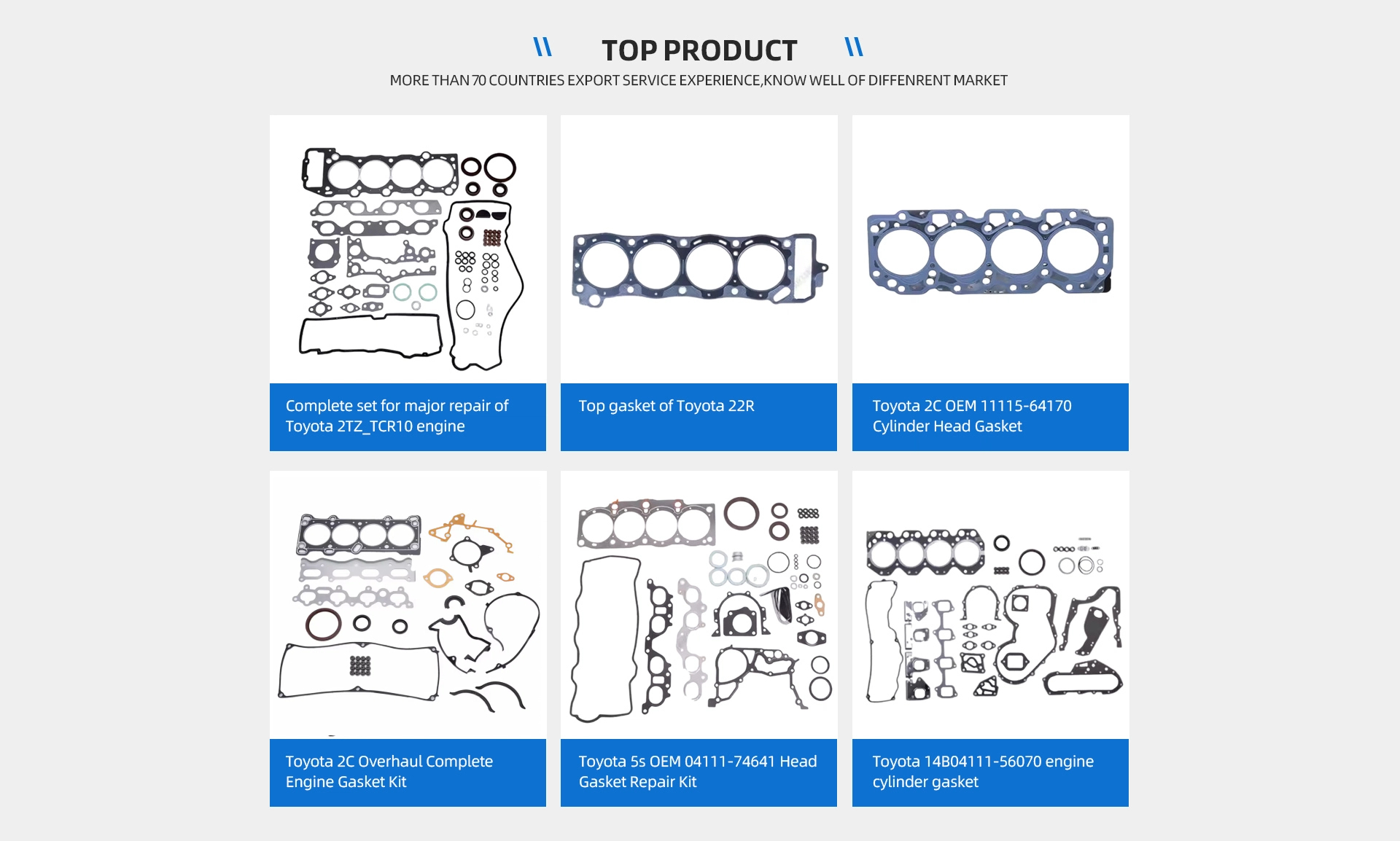 मुख्य उत्पादों: ओवरहाल पूर्ण सेट, आर हेड गैसकेट, कई गैसकेट, रूबर गैसकेट, तेल सील